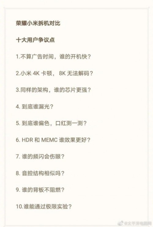 將三款電視內部做工對比,小米還在用老式三合一主板,紅米電視比小米電視有所改進,不過在細節方面也不夠完善,存在接口裸漏的問題。榮耀智慧屏看上去更用心,采用分體式主板、WiFi、藍牙、投屏三天線以及接口鍍金設計,質量更有保障。另外,在極限扭力測試環節,榮耀螺絲承受4N力依然正常,小米2.3N力滑絲,紅米2.9N力斷裂,再度體現出了榮耀的標桿品質。