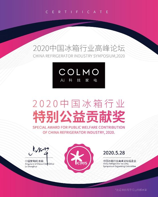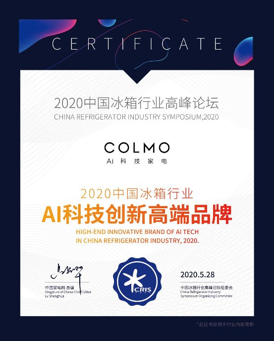 引領高階生活進化,COLMO冰箱攬獲2020年中國冰箱行業高峰論壇三大獎項