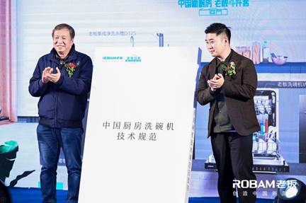 中國家用電器研究院副總工程師魯建國與老板電器品牌部部長崔波一同發布《中國廚房洗碗機技術規范》