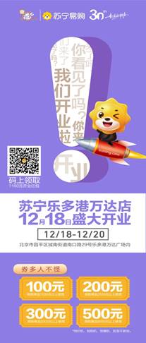 值此開業大吉,北京蘇寧易購聯合萬達廣場和眾多供應商拿出了海量的資源和超多的折扣來回饋感恩廣大消費者。在活動力度方面,12月18日到20日三天開業期間,每一位前來樂多港萬達店的消費者都可以參加抽獎活動,有機會抽取華為P40,掃地機器人,多功能料理鍋,藍牙音箱等精美獎品。同時,還特別推出“來就送”1100元開業禮券,為廣大消費者帶來更勁爆的活動力度。此外,北京蘇寧還聯合樂多港萬達廣場推出廣場小票抵錢花活動。開業期間,顧客憑10元以上樂多港萬達廣場任意購物小票,到店購物就可以享受額外優惠。