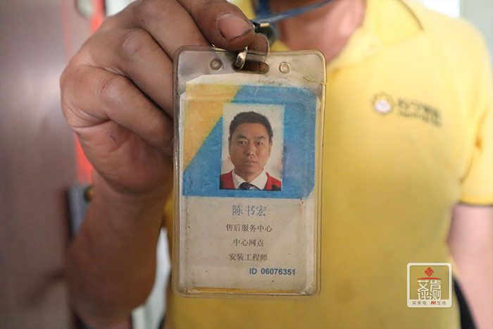 在聯(lián)系好師傅之后,佩戴工牌,身著橘黃色服裝的安裝師傅很快就準(zhǔn)時上門服務(wù)了。