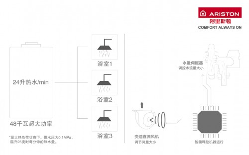 要滿足更多家庭成員以及高頻次多點式的用水需求,阿里斯頓HSL有容系列分別從產(chǎn)品自身的“功率”和“恒流恒感”兩方面進(jìn)行重點突破。首先,產(chǎn)品自身擁有48千瓦超大功率,每分鐘可提供24升熱水,可滿足3個衛(wèi)生間同時沐浴,或者一個衛(wèi)生間浴缸洗另一個衛(wèi)生間沐浴等多樣化的居家用水需要,以此完美解決三代同堂家庭的需求,讓大家足不出戶也能享受到五星級酒店般的澎湃沐浴體驗。其次,阿里斯頓HSL有容系列燃?xì)鉄崴鞑捎秒p閥精控,有效實現(xiàn)了恒流恒感。通過搭載的雙溫感系統(tǒng),可以時刻監(jiān)測進(jìn)出水溫,再通過智能CPU快速精準(zhǔn)運算,燃?xì)獗壤y和自動水量調(diào)節(jié)閥雙向聯(lián)動,進(jìn)而做到了電子級精準(zhǔn)調(diào)控出水溫度,即便家人成員增多用水需求增多,亦能保證大家擁有舒適的沐浴體驗。