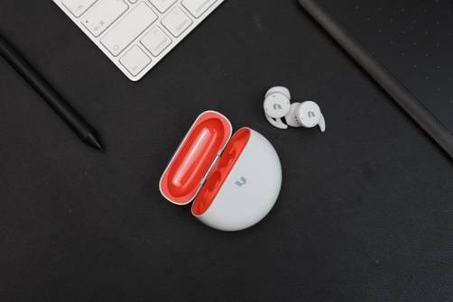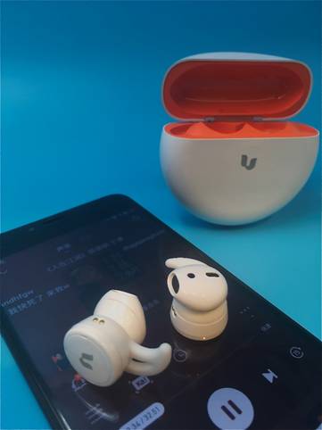 百靈聲學(xué)的獨(dú)特新型外觀設(shè)計(jì),在KularkE2上特顯得淋漓盡致。充電盒表面殼體的材質(zhì)不會(huì)粘上特別多的指紋,但是質(zhì)感不如磨砂親膚的材質(zhì)。正面Logo打開或關(guān)閉都會(huì)亮起,連接時(shí)也是會(huì)閃爍,簡(jiǎn)而言之這個(gè)Logo起到了提示的作用。“圓形的設(shè)計(jì)雖然體積稍大,但是對(duì)于日常出行攜帶并沒有影響。更像是一個(gè)太空艙的設(shè)計(jì),打開后耳機(jī)鑲嵌在里面。橙白色的搭配讓人眼前一亮”志愿者這樣說到。