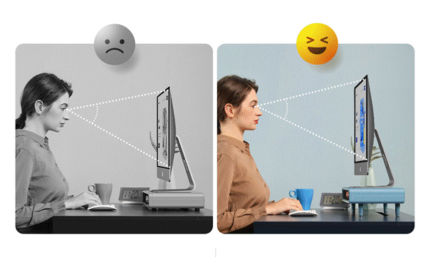 辦公電腦顯示屏普遍過矮,長期低頭工作,容易給肩頸造成負(fù)擔(dān),甚至出現(xiàn)腰酸頸痛、駝背的情況。SoleusAir舒樂氏這款手暖桌能夠為電腦顯示屏“增高”,6.5cm恰當(dāng)好處的高度,使眼睛能夠與屏幕平視,保護(hù)頸椎,糾正坐姿。另外,配備可拆卸式桌腳,有兩檔高度調(diào)節(jié),可根據(jù)自己最舒適的高度進(jìn)行自主調(diào)節(jié)。