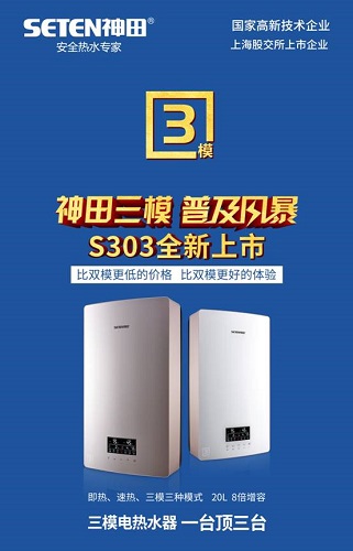 神田集團總工程師楊茂興介紹,2019年,隨著三模速熱的快速切入市場,三模電熱水器越來越受到消費者的關注,為了讓更多的消費者可以體驗到三模速熱電熱水器的優越性能,從2019年下半年開始,基于神田三模速熱平臺系統的領先優勢,研發部門就著手開發普及款三模產品DSZF-S303/。