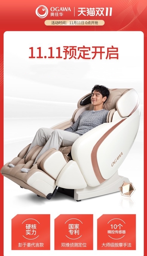 按摩養生還是交給更專業的品牌,奧佳華專業研究按摩技術24年,大品牌更值得信賴,現在多款熱銷高口碑產品雙十一參加預定更合算哦!快去ogawa奧佳華旗艦店購買吧!