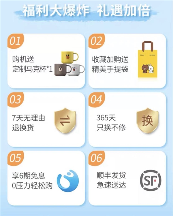 3、 365天只換不修,7天無理由退換貨,同時6期免息讓你歡購無負擔!