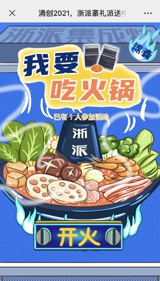 浙派‘我要吃火鍋’小游戲已于12月5日上線啦。只要關注‘浙派集成灶’公眾號參與游戲,就有機會獲得浙派集成灶、華為P40、華為平板、京東E卡代金券、浙派小廚寶、浙派炒鍋、迪奧口紅、浙派保溫杯、小米充電寶、現金抵用券、現金紅包...