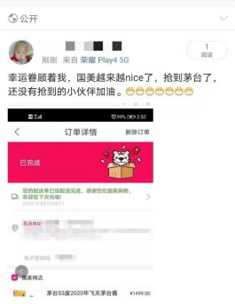 在層層技術(shù)堡壘下,多數(shù)搶購(gòu)成功的還是那些純粹憑“手速”實(shí)力,遵守規(guī)矩,使用正常渠道的酒友,就有不少茅粉微博曬單分享在國(guó)美搶購(gòu)成功的喜悅。