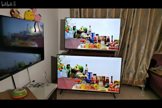 畫質測試環節,主播選取了色彩、HDR片源和MEMC三大角度來進行對比。從整體色調來看,Redmi X55顏色過于飽和,有較為明顯的偏紅現象,看起來不太真實。榮耀智慧屏X1能夠做到還原真實,同時兼顧色彩張力,看起來很舒適。HDR測試中,Redmi X55在太陽邊緣出現了輕微齒輪現象,存在一定失真。齒輪問題在此前的小米電視5Pro上面就已經出現,看來Redmi X55依然沒有進行算法調優。MEMC測試中,Redmi X55雖然效仿榮耀加入了這一功能,但是實測運動畫面存在一定程度的卡頓,榮耀智慧屏X1就很流暢。