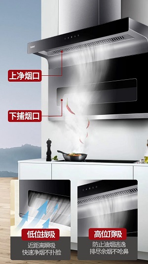 其中,格蘭仕頂側(cè)雙吸油煙機(CXW-280-C117R)既具備了側(cè)吸煙機的近吸附性,又擁有頂吸煙機的廣闊攏煙的效果,創(chuàng)新雙風(fēng)道齊下,下捕煙口近距離攏吸油煙,高位頂吸凈煙口,罩住油煙,排盡余煙不嗆鼻。雙吸齊下,高效凈煙不撲臉。