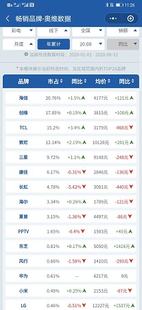 來自大數(shù)據(jù)公司奧維云網(wǎng)的監(jiān)測數(shù)據(jù)顯示,截止到今年8月底,線下市場,LG電視在中國市場銷售排名第15名,市場份額為0.46%。LG冰箱為第19名,市場份額為0.33%。LG洗衣機(jī)為第15名,市場份額為0.46%。線上市場,LG電視和冰箱都跌出了前20名之外。