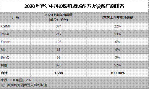 導讀: 家電消費網11月10日訊 愛普生投影機繼2018年、2019年在中國市場被極米超越后,在今年上半年銷量第二的位置也不保,又被堅果超越,已經下滑到第三。昨天,國際知名研究機構IDC公布的《IDC 2020年第二季度