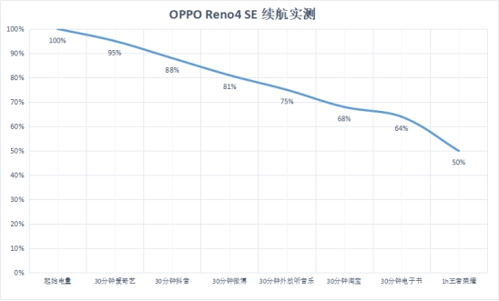 一般來說,手機的續(xù)航性能是許多人在選購手機時著重考慮的方面之一,而OPPO Reno4 SE的續(xù)航實力就十分令人滿意。該款機型在采用了一塊4300mAh電池的同時還搭載了65W SuperVOOC 2.0超級閃充技術,這使得手機從零電量狀態(tài)充至滿電僅需38分鐘,為用戶提供了更加快速的充電體驗。可以說,在同等價位下OPPO Reno4 SE所帶來的充電體驗“無人能及”。而在續(xù)航這一方面,OPPO Reno4 SE所展現(xiàn)出來的實力也相當不錯。從下圖中可以看到,即使在經(jīng)歷了長時間使用多種應用軟件的情況下,該款機型的耗電量也非常少,由此看來,OPPO Reno4 SE能滿足大多數(shù)用戶的續(xù)航需求,使得用戶無需擔心電量消耗過快所帶來的種種困擾。