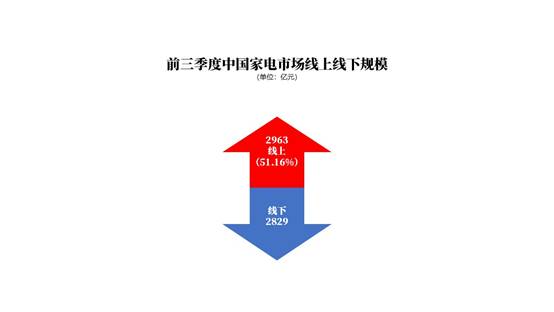 受疫情影響,今年第一季度,線上家電市場零售額規模首次超過線下。但隨著疫情得到控制,線下市場復蘇明顯,線上線下形成均分天下的局面。《報告》顯示,第三季度,家電市場線下零售額為1052億元,線上為1050億元。線下市場規模依然呈下降趨勢,同比降幅17.8%。由于市場消費習慣的形成、促銷手段的多樣化、渠道布點的下沉,線上市場增幅重新上揚,增速為26%。今年前三季度,線下家電零售規模為2829億元,線上零售規模仍高于線下,為2963億元,線上渠道整體占比達51.16%。