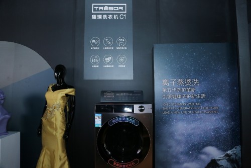 位于展區C位的海信璀璨C1洗衣機,不僅功能強大,顏值也在線。包豪斯風簡約造型,大氣奢華,精致時尚,可以很好搭配現代家居風格。搭載離子蒸燙洗科技,可以實現1刻鐘快蒸除皺功能,15分鐘即可熨平衣物褶皺;與此同時,在蒸燙洗過程中,配置的離子發生裝置能生成大量的生態級負氧離子,可有效吸附各種異味,讓衣物時刻保持清新; 更有UV陽光除菌洗功能,模擬陽光紫外線除菌,實現高達99.9%除菌率,幫助用戶全面抵御細菌侵襲。