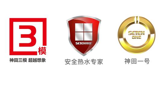 神田的安全熱水專家的品牌形象采用了盾牌與田字的組合,盾牌代表著安全,田字是神田品牌的元素,二者組合在一起,形成了非常強烈的符號。