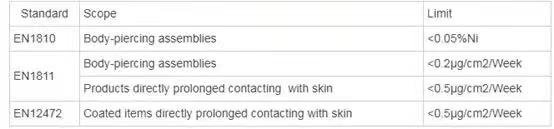 (歐盟對鎳標準適應范圍及鎳釋放量限值要求)