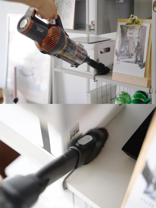 不知道你們有沒有同感,其實打掃衛生之所以很累是因為過程中做了好多無用功。比如用吸塵器吸到一些地方的時候,你就需要挪一挪桌椅茶幾,這個時候就要把吸塵器彎腰放到地上(這對現在大著肚子的我來說很難),或者找個地方能把吸塵器立住。萊克魔潔M12 MAX完全考慮到了這一點,它可以直接把吸塵器立在任何地方,清掃過程中省去了彎腰或者找地方放吸塵器的無用功,也節省了不少時間。