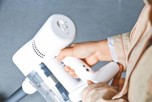 而吉米A6利用人體工學采用上手把,將機器重量很好地分擔,形成等臂杠桿,依靠骨骼發力而不是肌肉發力,機器的重量與提著向上的力相互抵消,單手使用也沒有任何負重感,工作一天的爸爸拿著它清掃全屋也沒有問題,輕松又簡單。