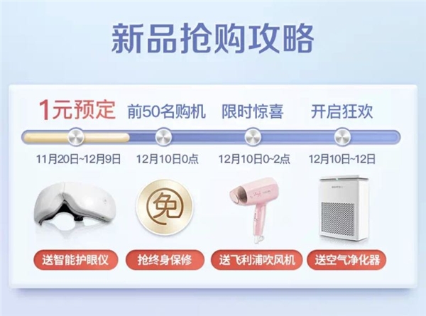 11月20日-12月9日:預(yù)定熱身禮,1元預(yù)定,就送智能護(hù)眼儀,守護(hù)你的靈動(dòng)雙眸;