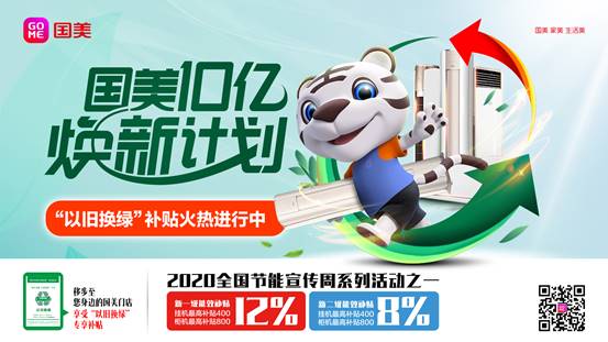 為積極響應國家綠色行動號召,加速新能效空調推廣、推動綠色消費,助力綠色生活走進千家萬戶,7月6日起,國美將在全國范圍開展為期2個月的主題為“國美10億煥新計劃”的補貼活動,助力空調“以舊換綠”。