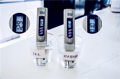 以自來水和過濾后的純凈水對比測試,自來水測出來的TDS值是129ppm,而由過濾后的水TDS值為10ppm。
