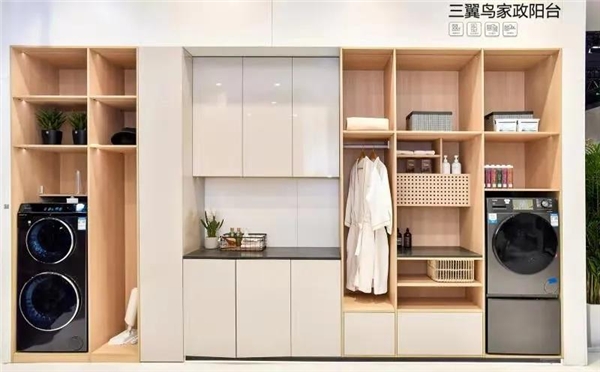 以AWE現(xiàn)場展出的“新陽臺”為例,它不再是傳統(tǒng)只能采光晾曬、擺放家電、堆雜物的空間,而是可以通過創(chuàng)新健身、收納、親子、萌寵等7大類18種陽臺生活場景,圍繞用戶實(shí)際生活動(dòng)線進(jìn)行合理分區(qū)收納,并打通洗衣機(jī)、干衣機(jī)、晾衣架、疊衣機(jī)等智能網(wǎng)器的互通互聯(lián),為用戶提供主動(dòng)智能服務(wù)。例如,運(yùn)動(dòng)完了隨手放進(jìn)洗衣機(jī)干衣機(jī)組合進(jìn)行洗烘,洗衣液沒了可選擇自動(dòng)購買,想要在陽臺上讀書還是運(yùn)動(dòng)還是養(yǎng)寵物,新陽臺里都可以幫你定制方案。