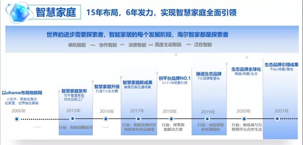 2006年,物聯(lián)網(wǎng)這一概念剛剛被確立不久,海爾智家就意識到他在家電領(lǐng)域的應(yīng)用前景和上升趨勢,并以此為方向開始發(fā)力。