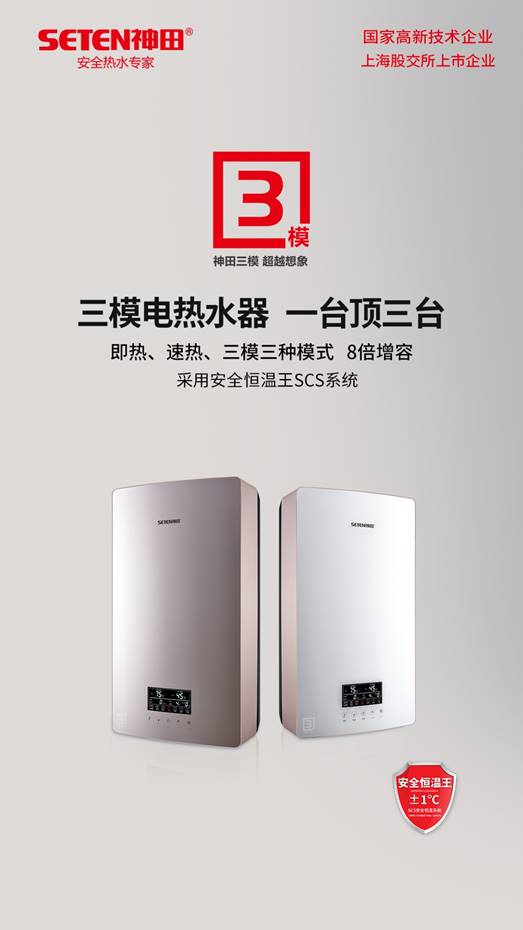 黃建岳表示,早在2019年,神田就推出三模速熱產品,具有即熱、速熱、三模三種加熱模式,體積小,加熱快,8倍增容,可以產生160L的熱水,充分滿足消費者的沐浴需求。神田三模電熱水器憑借“一臺頂三臺+8倍增容”的技術優勢,產品上市后便出現了產銷兩旺的良好勢頭。