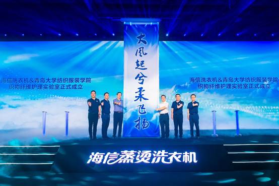 發(fā)布會(huì)上,海信洗衣機(jī)與青島大學(xué)紡織服裝學(xué)院合作成立織物纖維護(hù)理實(shí)驗(yàn)室,是紡織業(yè)與洗護(hù)業(yè)一次令人期待的深度合作。通過實(shí)驗(yàn)室的成立,海信洗衣機(jī)可以獲取關(guān)于不同纖維的特性分析和專業(yè)數(shù)據(jù)支持,讓洗護(hù)科技更好符合纖維本性,讓洗衣機(jī)更懂護(hù)理,而借助海信洗衣機(jī)龐大的用戶數(shù)據(jù)解讀,青島大學(xué)也可更精準(zhǔn)、全面的掌握不同面料洗滌后的狀態(tài),為新型面料的性能完善與研發(fā)提供第一手的信息支持。雙方共同發(fā)力,更好地服務(wù)于廣大消費(fèi)者的健康洗護(hù)生活。