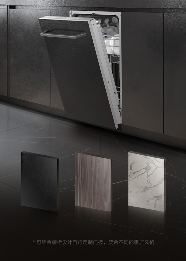 午宴過后,太陽正烈。伴隨唱片機緩緩流淌出的音樂,和好友們在西廚區的中島,靜享一餐清爽的意式下午茶正合時宜。島臺旁的獨立水槽設計,可隨手清洗用過的茶杯。你悠然漫步廚間,準備沙拉的同時亦不耽誤聊天,盡享歡聚每一刻。與此同時,中廚水槽旁的02GA洗碗機,正以47dB*超快靜音洗滌讓餐具回歸澄凈,不僅如此,它還是讓你的廚房跳脫出千篇一律的美學大師。不論你的廚房是極簡意式現代風,還是復古西西里情調,你都可以結合不同的家居風格自定義洗碗機面板,在隨心搭配中,邂逅意式生活美學。