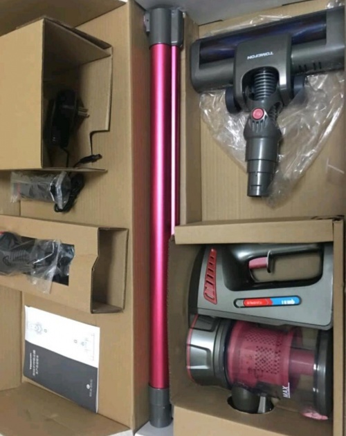 斐納TOMEFON-X60無線吸塵器包裝盒非常大氣美觀,開箱后可以看到盒內包括主機、金屬管組件、電池包、地刷組件、清潔附件、充電適配器、壁掛充電座等配套設施,配件齊全完善,自用很合適,送人也拿的出手。