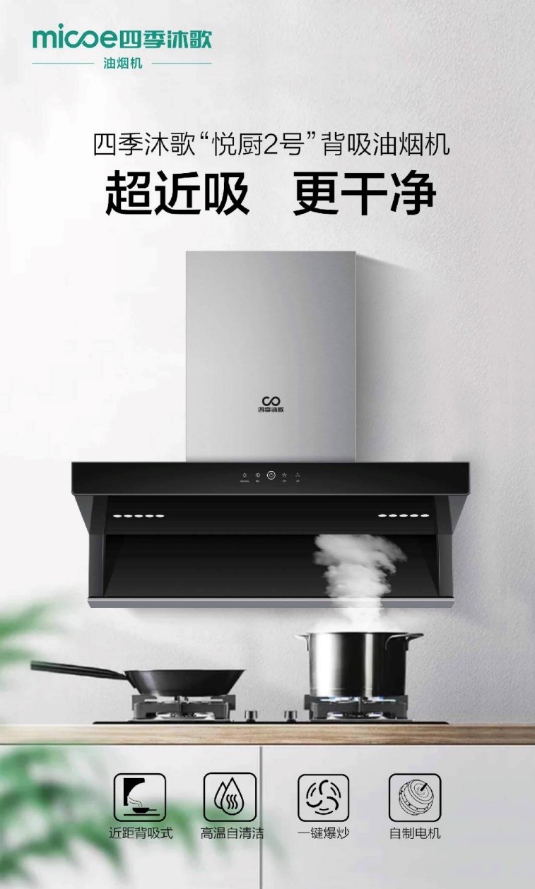 一般市場上大部分頂吸式抽油煙機都具有較大的吸力,但是,頂吸式油煙機與炒鍋還有一定距離,向上吸走的過程略長,便給了油煙“逃逸”的機會。而四季沐歌的這款背吸式抽油煙機采用革新的“背吸”方式,具備大吸力、近距離吸煙的優勢,完美的解決了上述問題。