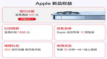 據悉,目前在蘇寧易購購買Apple新品,至高可享受銀行分期滿減300元、以舊換新至高補貼1550元、30G定向流量,首月免月租費的錦鯉紅包以及專家30分鐘一對一線上教學Apple產品使用無憂,另外蘇寧易購Super會員還有專享12期免息活動。