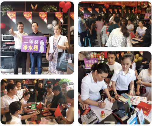 活動期間吸引了一波又一波的顧客前來體驗,氣氛十分火爆,搶購美多,簽約不斷,抽獎、砸金蛋好禮送不停,更有幸運的顧客不僅買到了滿意的美多產品,還中了大獎,顧客們臉上洋溢著喜悅的笑容,滿載而歸,同時也收到了很多顧客對美多新店開業的祝福!