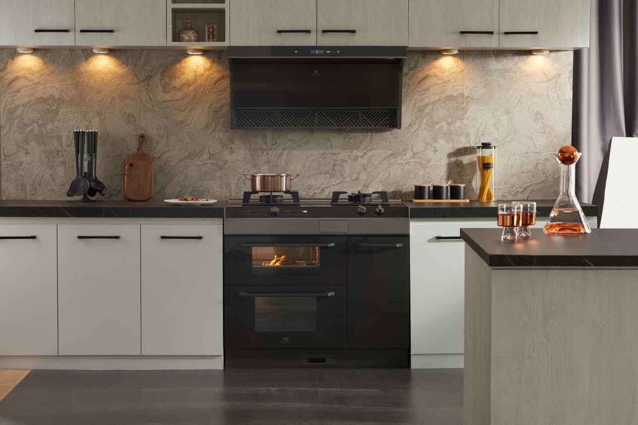 在Master Kitchen M7烹飪立方全效創作之時,M7煙機亦自動感應同步開啟,25m³/min澎湃鯨吸,讓你無需為中廚區域烹飪時產生的油煙與蒸汽困擾,盡享智能化的假日烹飪時光。