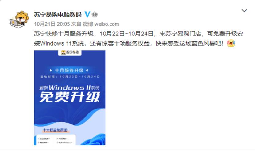 免費升級Windows 11 蘇寧易購門店推出“十大權益”