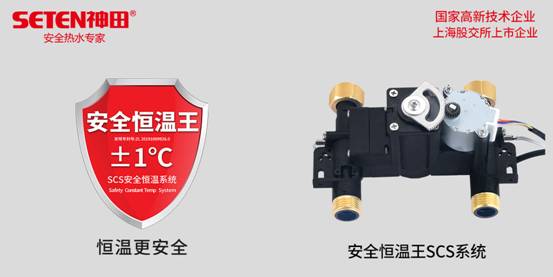 神田發明專利的安全恒溫王SCS系統是第四代的恒溫閥產品,使用特殊的工程塑鋼材料,集安全防電墻、恒溫閥與電腦控制系統為一體的集成系統。 SCS是三個英語字母的縮寫,Safety代表著安全, Constant Temp代表著恒溫, System代表著系統。安全恒溫王集成了安全防電墻、恒溫閥、流量傳感器,溫度傳感器,電腦控制系統,是目前行業內恒溫閥的王者之作。