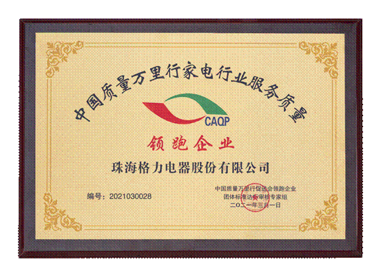 日前,格力電器獲頒“中國質(zhì)量萬里行家電行業(yè)服務(wù)質(zhì)量領(lǐng)跑企業(yè)”認證。該獎項由國家市場監(jiān)管總局直屬單位——中國質(zhì)量萬里行促進會頒發(fā)。自1994年成立以來,中國質(zhì)量萬里行促進會始終致力于推動質(zhì)量強國建設(shè),并逐漸在市場和消費者心中樹立了各行各業(yè)產(chǎn)品質(zhì)量及服務(wù)質(zhì)量權(quán)威認證的標桿。