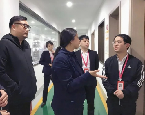 富得利木業(yè)車飛、喜臨門家具股份有限公司陳萍淇、紹興禹建建設(shè)集團(tuán)有限公司凌陽、浙江銳智信息技術(shù)何世偉、奧力進(jìn)出口商健行等蒞臨佳歌總部,佳歌集成灶總經(jīng)理袁海濱、市場部部長過龍超,生產(chǎn)車間廠長石鋒等陪同。
