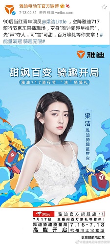 明星助陣雅迪第五屆717騎行節,開啟綠色科技出行新風尚