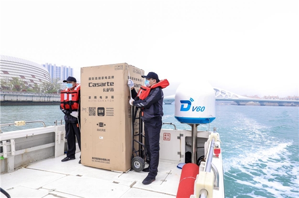 接到用戶需求后,卡薩帝第一時間定制方案,專門包下一艘游艇送裝冰箱。服務管家在送裝當天全程小心守護冰箱,乘風破浪穿越26.7公里海面登島。到達民宿后,為用戶帶來鮮花紅毯尊貴服務,并在安裝過程中,安全檢測水電、測量安裝環境、耐心指導操作、主動清理現場......用全流程高端精致服務獲得荊先生的認可。