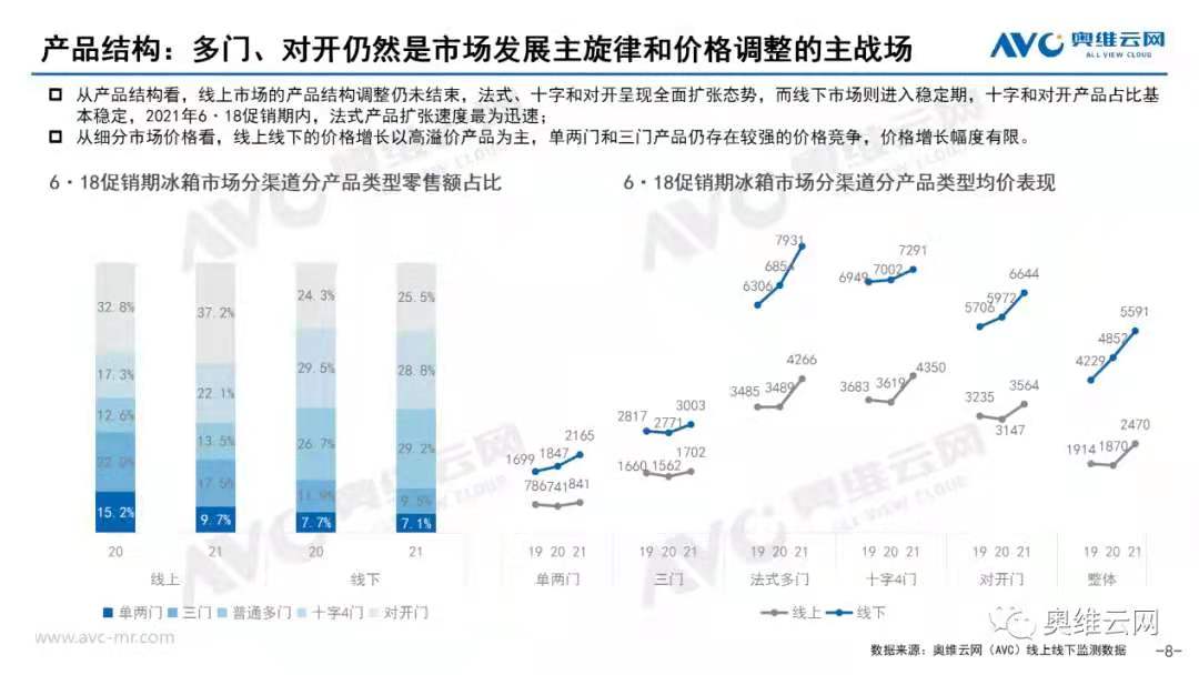 從細(xì)分市場(chǎng)價(jià)格看,線上線下的價(jià)格增長(zhǎng)以高溢價(jià)產(chǎn)品為主,單兩門和三門產(chǎn)品仍存在較強(qiáng)的價(jià)格競(jìng)爭(zhēng),價(jià)格增長(zhǎng)幅度有限。