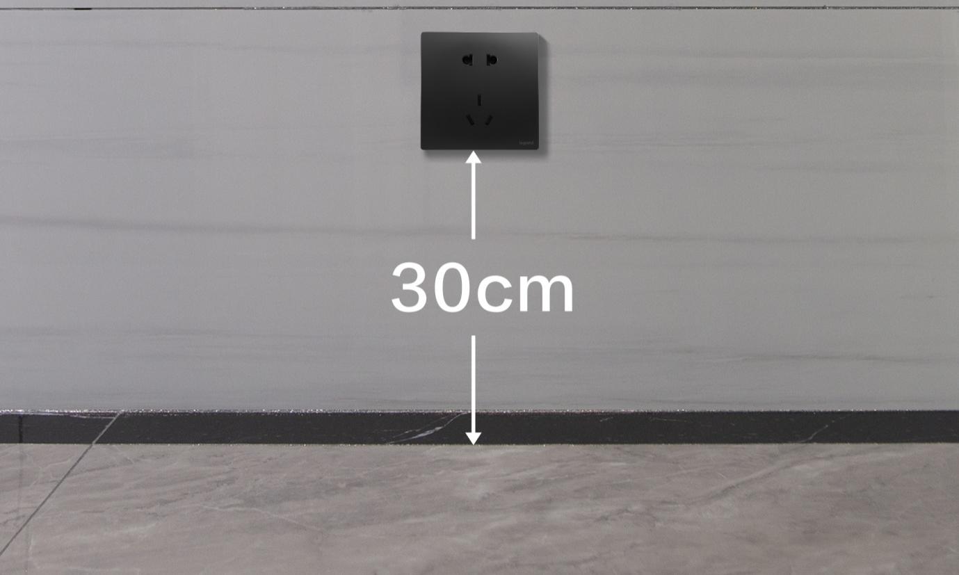 墻邊離地30cm處預留一個五孔插座,可供掃地機使用。