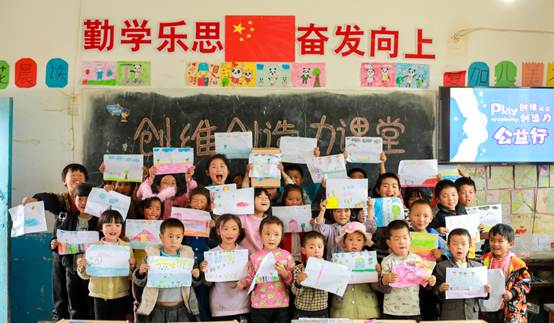這各年紀的孩子,觀察力、想象力正處在快速成長期,因此,每一次與外界支教團隊的接觸,都是對孩子們認知、想象的充電升級。支教老師和工作人員,運用新穎的教學方法,借助教學設備,為孩子們開展了一堂關于想象、聯想、構圖、繪畫的創意課。孩子們理解的非常快,并且很快能夠參與進來,一個個熱情高漲。