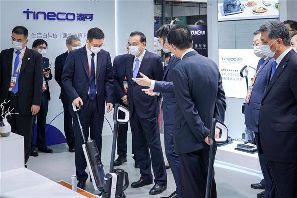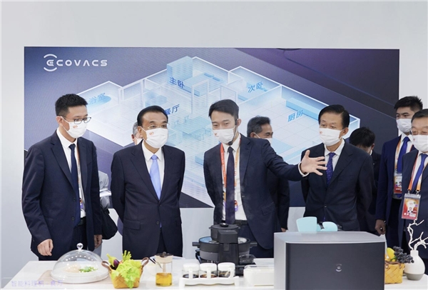 在巡視科沃斯集團展臺時,李克強總理與科沃斯集團副董事長、科沃斯機器人CEO 錢程親切交談,對科沃斯集團的整體業務發展表示了關心,詢問了企業的自主研發情況、與國際化進展,當得知科沃斯掃拖機器人和添可洗地機產品在國內外均已市占率第一時,總理對這些成績表示了認可,并肯定了科沃斯在國際化道路上取得的成果。