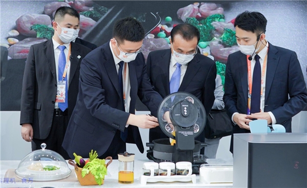 添可智能科技CEO冷泠現場還為李克強總理展示了添可旗下智能洗地機“芙萬”和智能料理機“食萬”等創新產品。在消費升級的大背景下,智能家用電器正在逐步替代傳統人力,在消費者的幸福生活中發揮重要作用。總理對智能吸拖洗、深度自清潔的芙萬2.0洗地機,以及煎炒蒸燉炸煮一機搞定、還能幫助用戶提升廚藝的食萬2.0料理機,給予高度評價。