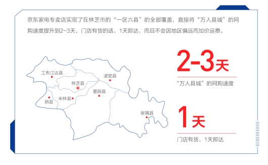 在價格方面,此前電器市場在偏遠地區存在部分電器價格不透明的現象。京東電器無論是大件家電還是小件電子產品,均有品質保障并堅持實行線上線下同價。以京東家電專賣店為例,其實現了在西藏林芝市“一區六縣”的全部覆蓋,直接將“萬人縣城”的網購速度提升到2-3天,門店有貨的話,1天即達,而且不會因地區偏遠而加價運費,有效化解了偏遠地區電器消費市場不透明、不公平的矛盾。