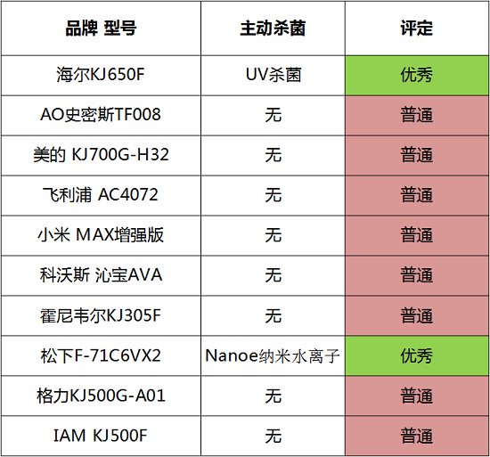 本次十款產品中,僅海爾KJ650F和松下F-71C6VX2具備主動殺菌能力,其中海爾采用的是UV殺菌,松下采用的Nanoe納米水離子技術。